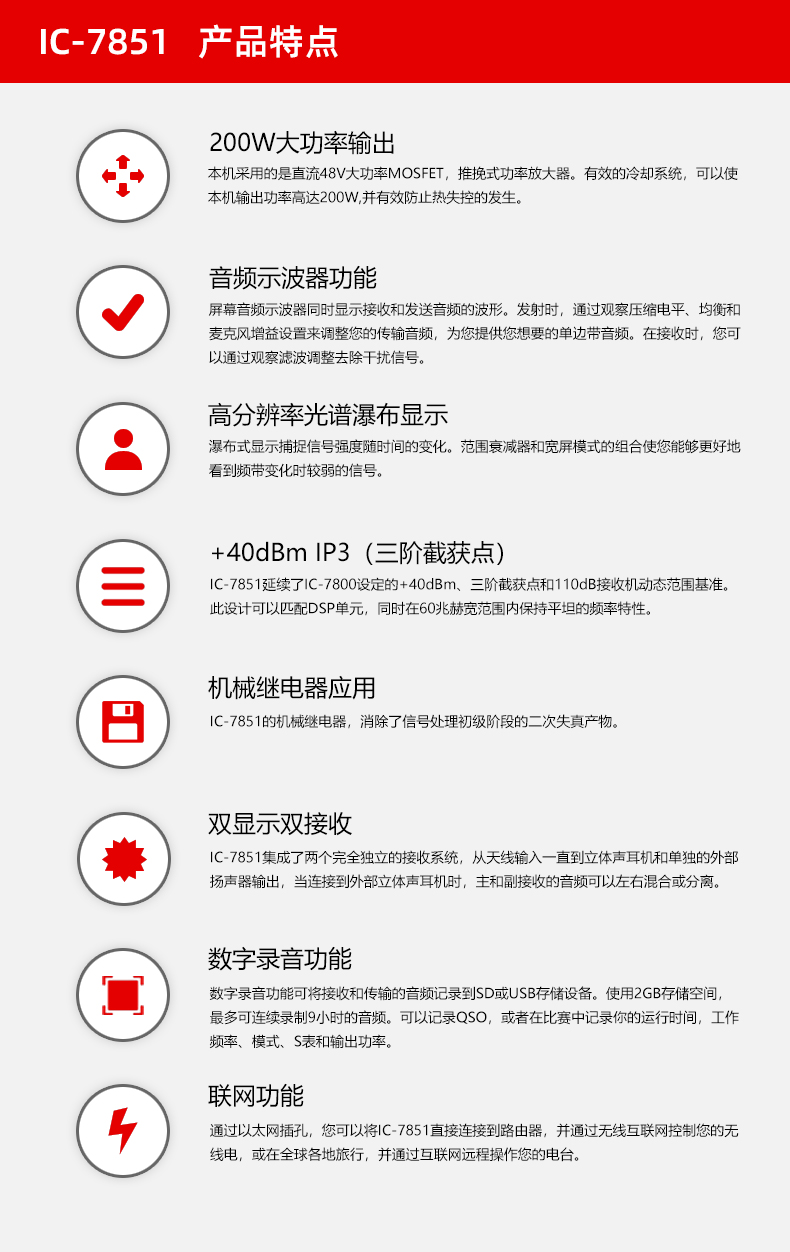 icom艾可慕IC-7851短波電臺 高清顯示/實時頻譜/操作靈活/內置天調