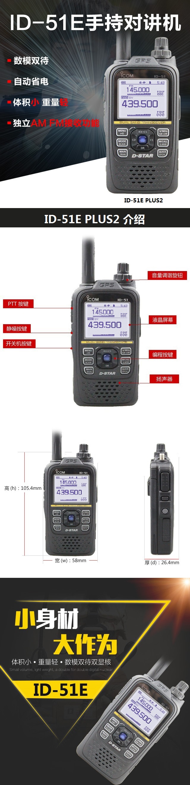 ICOM艾可慕ID-51E PLUS業余對講機(停產) 數模雙待/自動省電/小巧設計/UHF/VHF