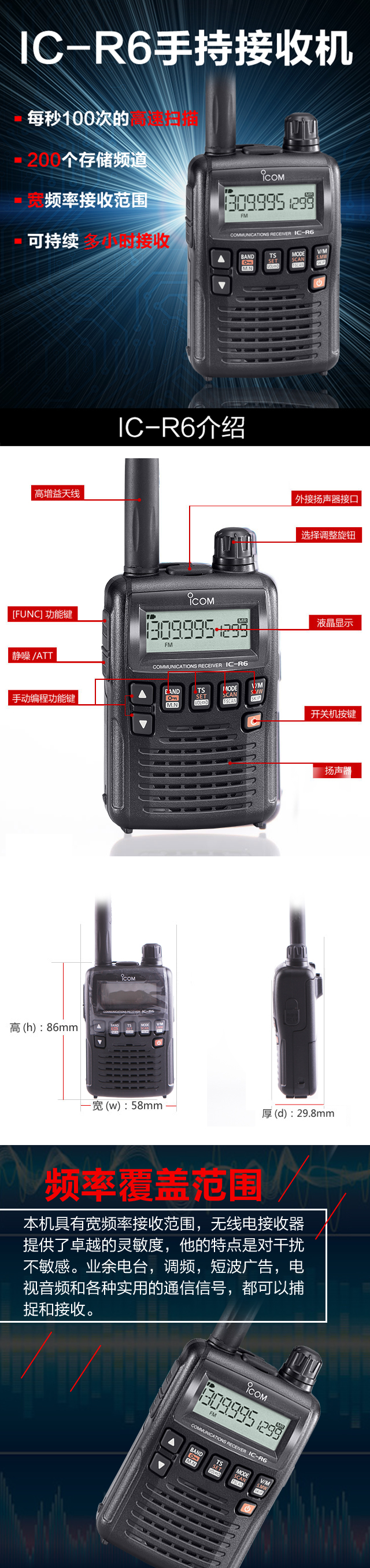 ICOM艾可慕IC-R6接收對講機 高速掃描/VSC控制/纖巧設計/連續接收