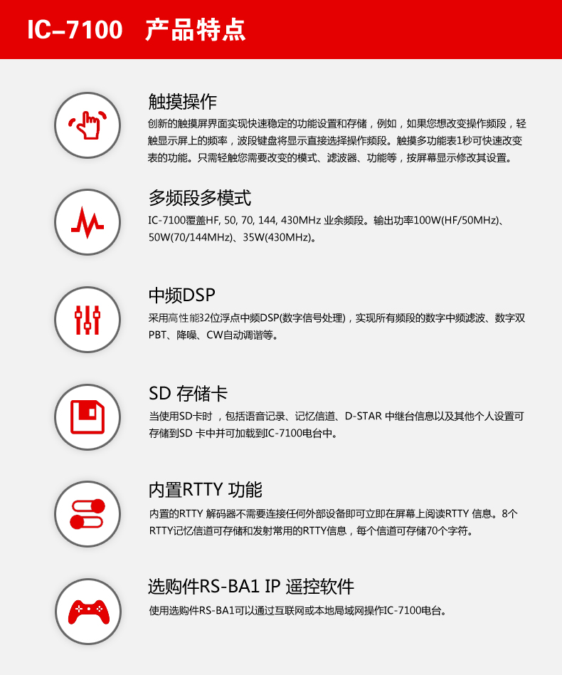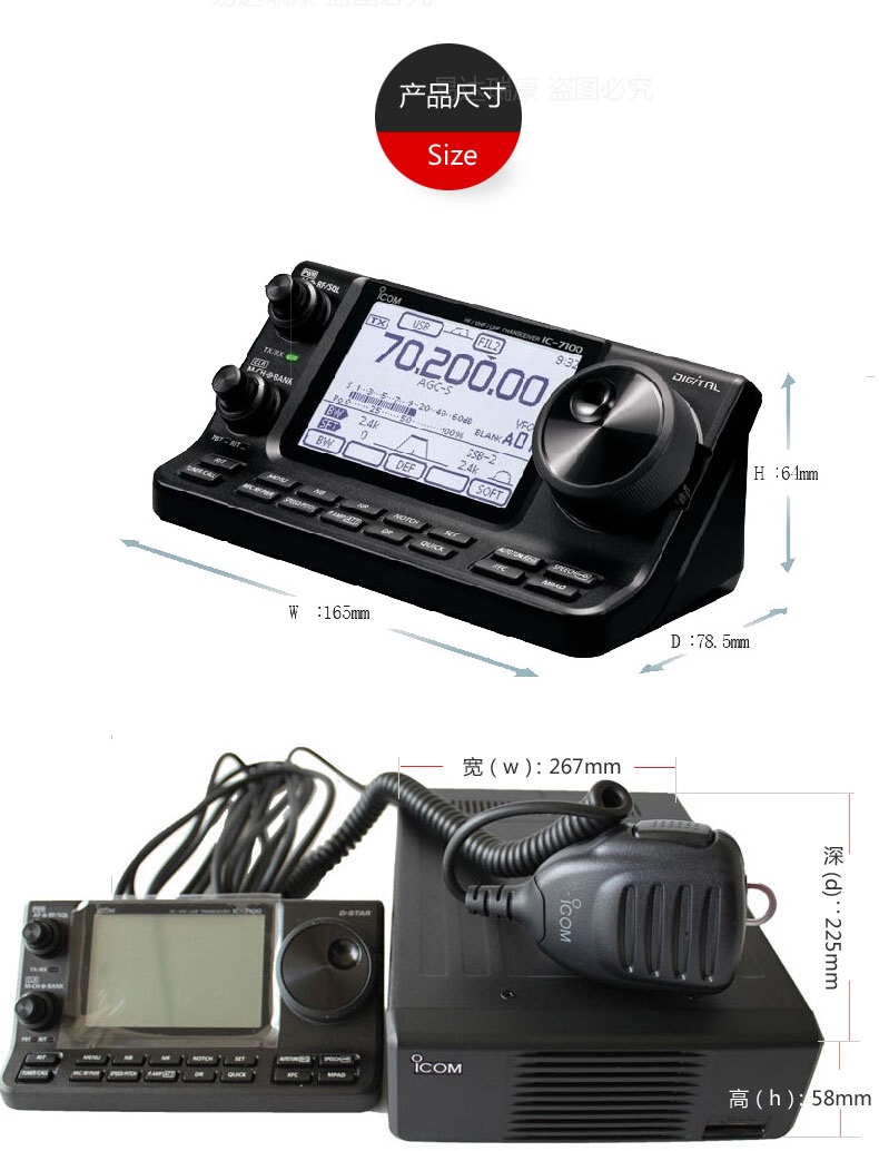 ICOM艾可慕IC-7100多波段多模式短波電臺 觸屏控制/UHF/VHF雙段接收/聲音清晰