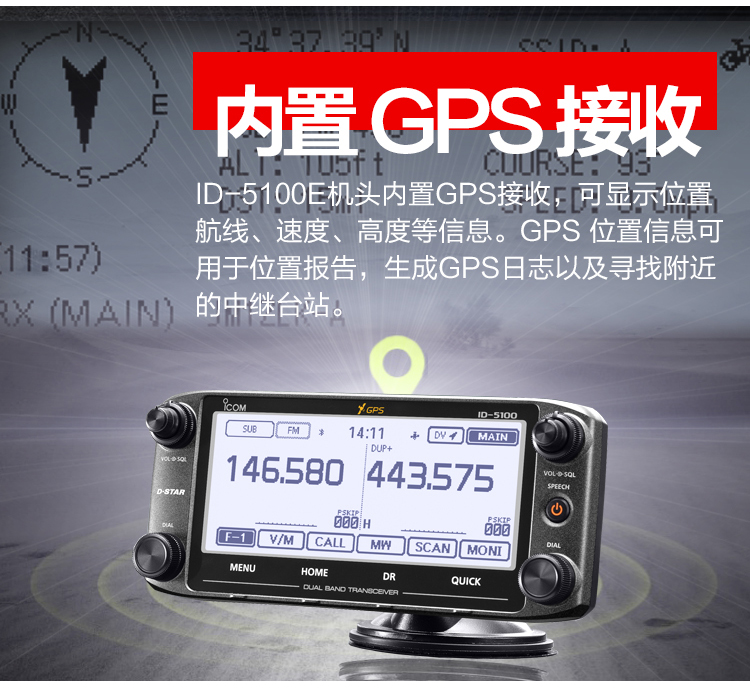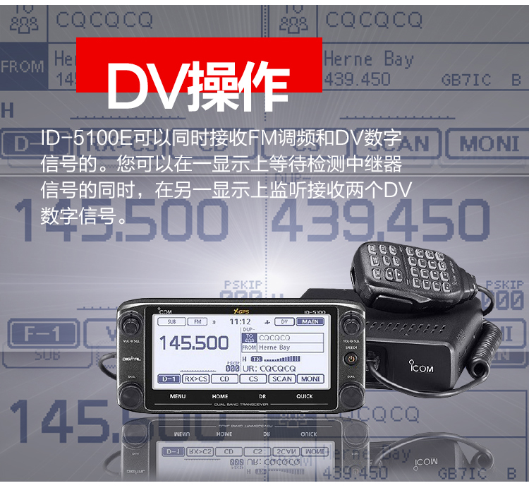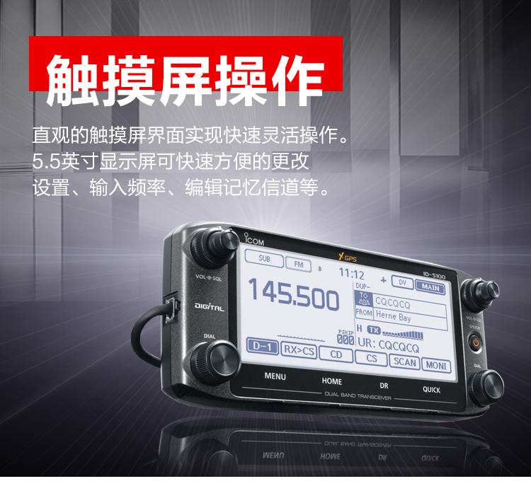 ICOM艾可慕ID-5100E業余電臺對講機 VHF/UHF雙顯雙待/數模觸摸操作/GPS