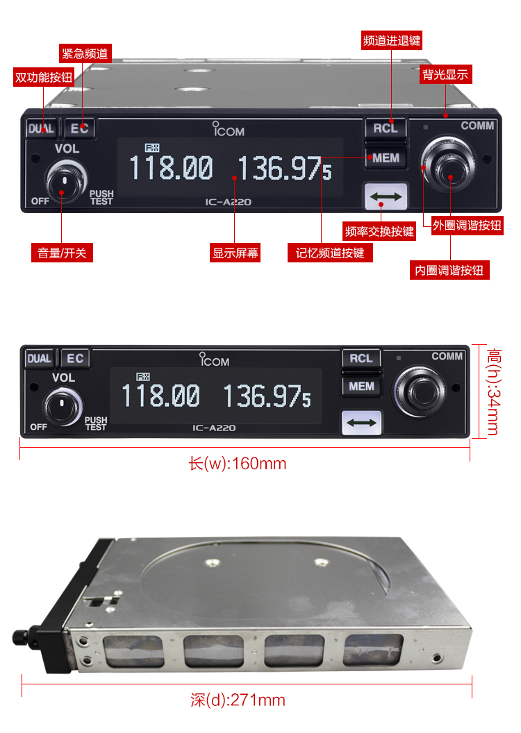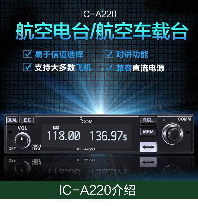 ICOM艾可慕IC-A220(替換IC-A210)航空電臺 航空電臺/易于頻道選擇/兼容12V/24V