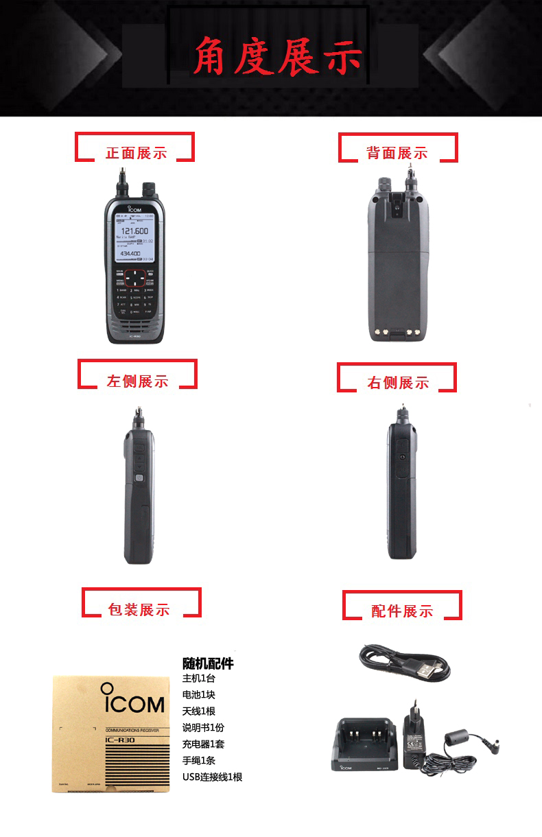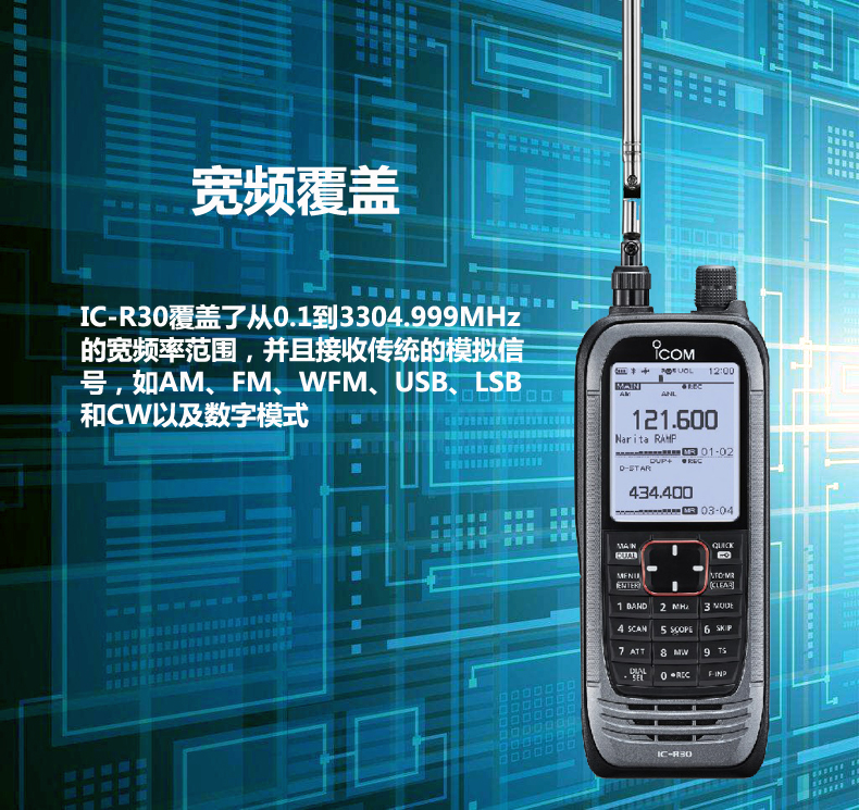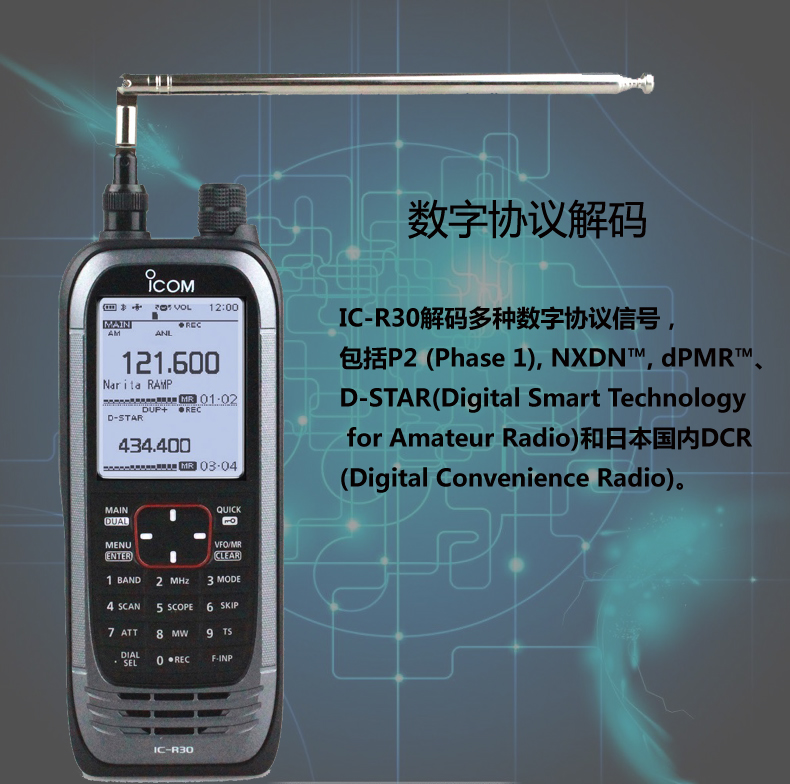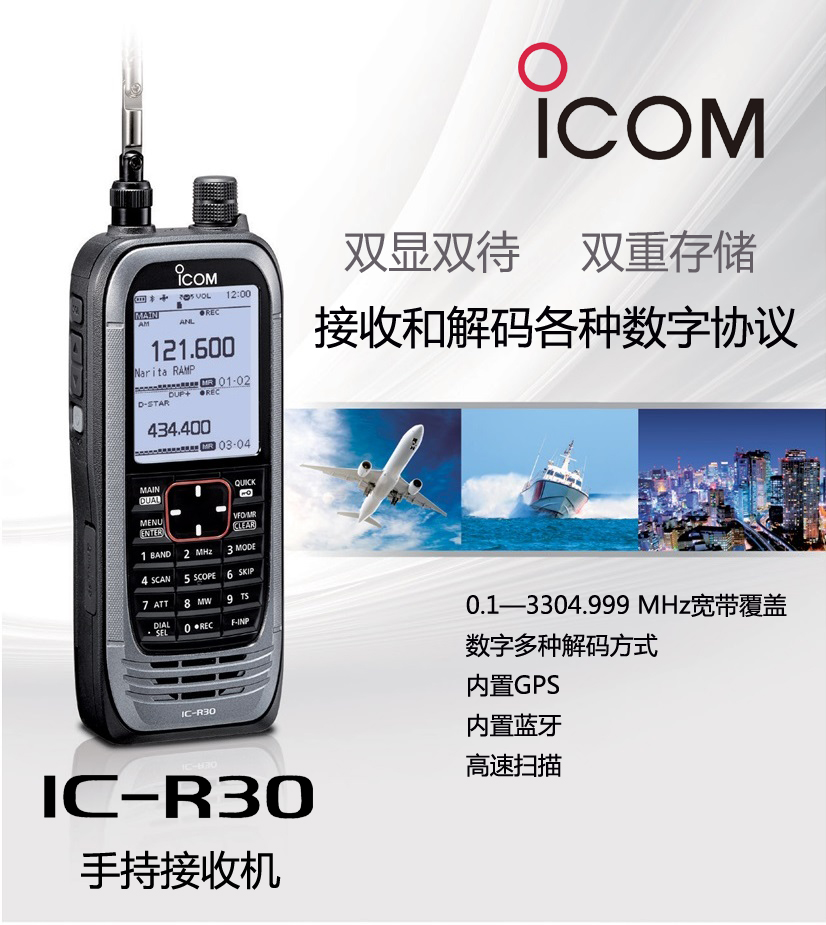ICOM艾可慕IC-R30接收對講機(停產) 解碼數字/模擬/雙顯雙待/GPS/藍牙